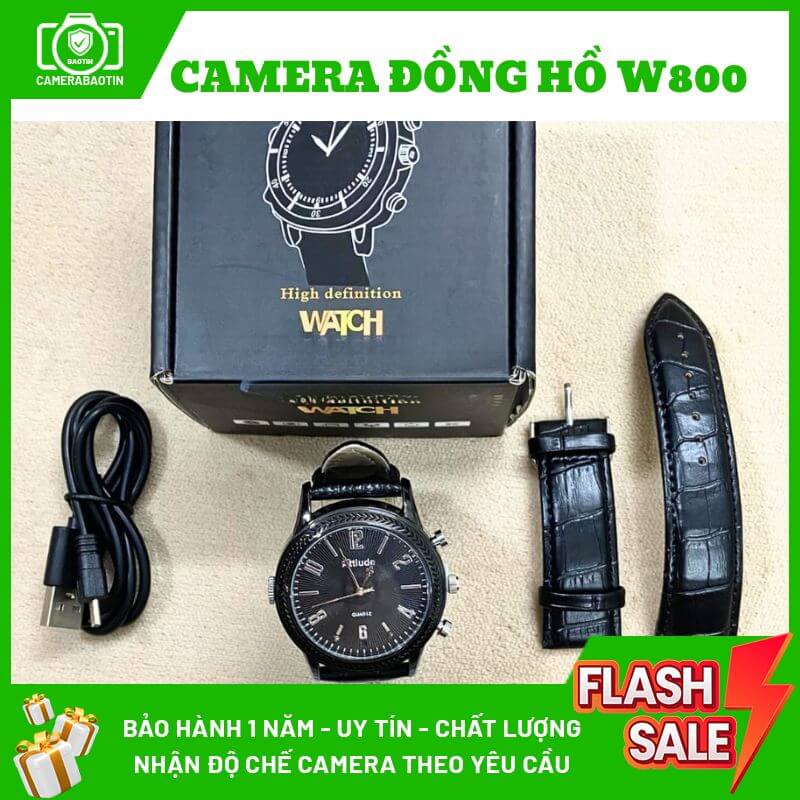 • Đồng hồ camera nguỵ trang W800 được thiết kế thời trang, sang trọng, dây da trẻ trung, thân thép hợp kim cứng cáp. Mặt đồng hồ kim và số phong cách thanh lịch. Hoạt động như đồng hồ thật với pin bền 1–2 năm